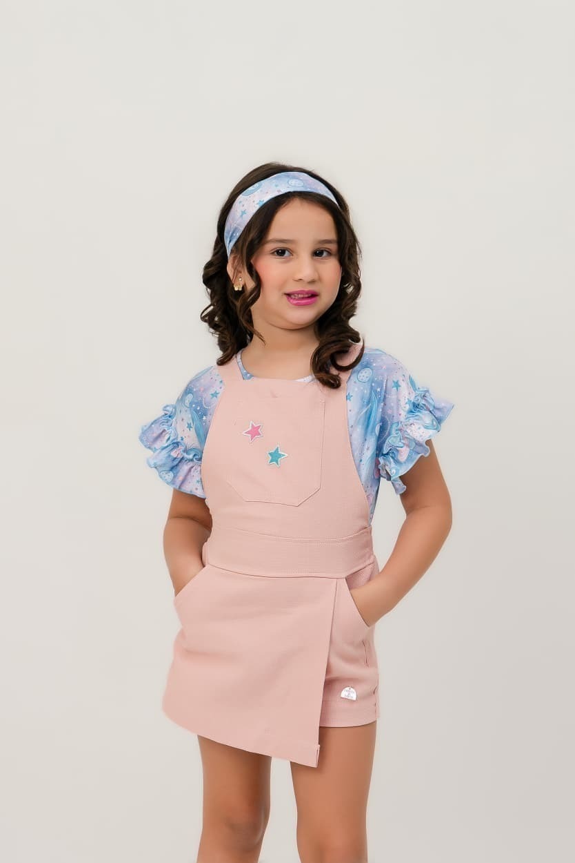 Confeccionado em tecido leve e fresquinho, ele traz uma estampa inspirada no mundo dos contos e da fantasia, com cores suaves e detalhes delicados que tornam o look ainda mais especial.
